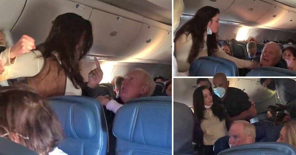 デルタ航空の機内で、食事中のマスクをしていない老人に襲いかかる女性の姿が記録されていた。