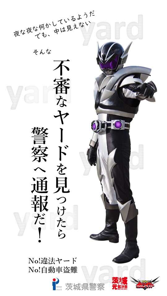 これは茨城県警察本部の公式アカウント(@ibarakipolice)がXで行った注意喚起の投稿だ。地元キャラクターの写真を添え、違法ヤード撲滅へ強いメッセージを発信している。