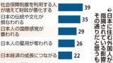 日本に住む外国人が増えることで指摘されている様々な影響について、その通りだと思うものを10項目から複数回答で選んでもらったところ、トップは「治安が悪化する」の68%だった。