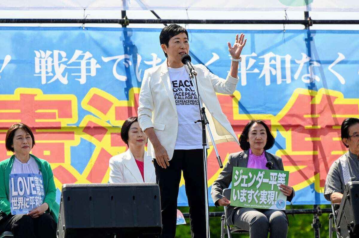 憲法記念日の3日、護憲派による集会が東京臨海広域防災公園(東京都江東区)で行われ、立憲民主党、共産党、れいわ新選組などの幹部が出席した。