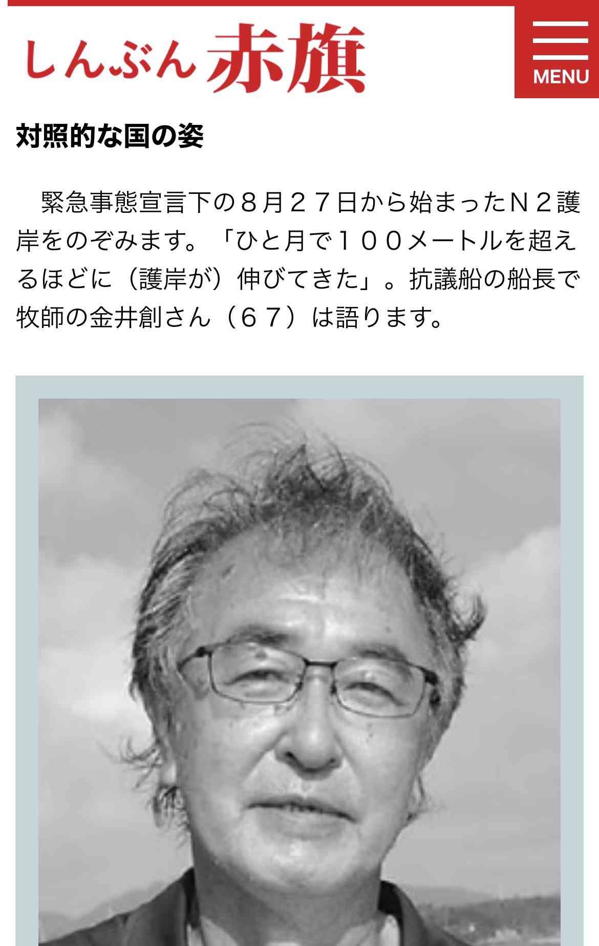 抗議船の船長で牧師で金井さん