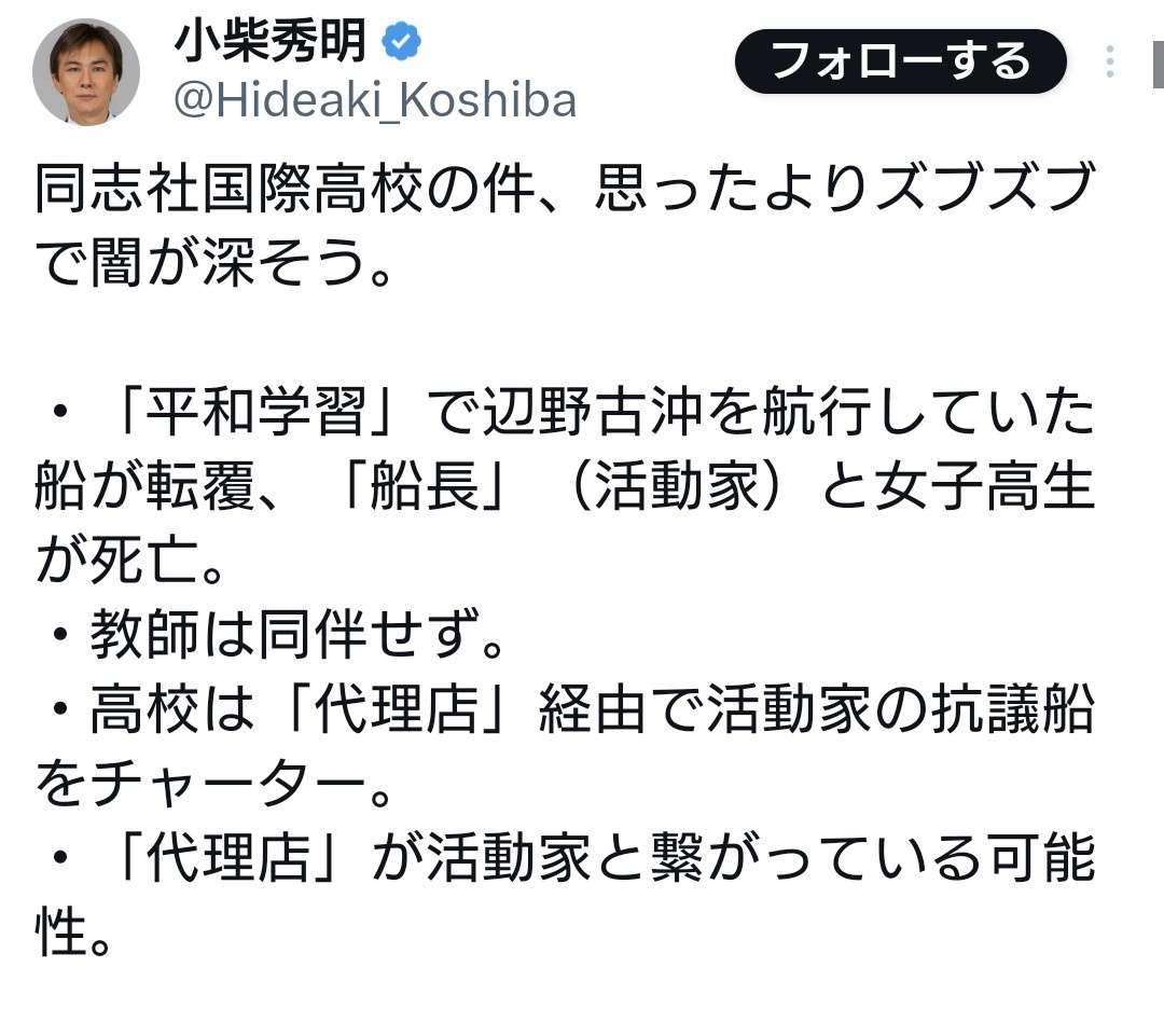 亡くなった船長も同志社国際も日本基督教団系