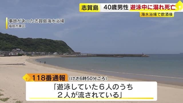 死因は溺死だということです。友人6人で集まって海水浴場でバーベキューをしていて、男性は酒を飲んだ状態で午前6時15分ごろから海で遊泳していたところ、