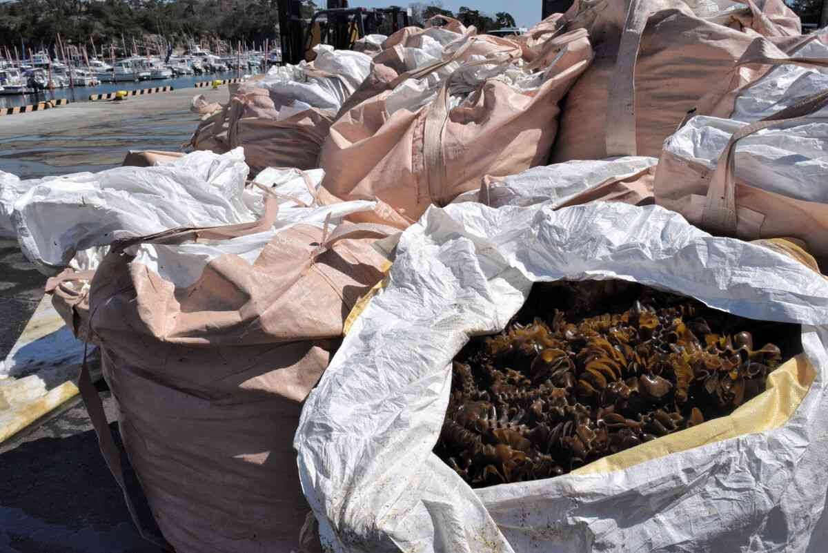 塩釜市の新浜漁港。重油に漬かったワカメやメカブが袋に入れられ、廃棄のために山積みさ…(以下有料版で)河北新報 2026年4月9日 6:00 [有料]