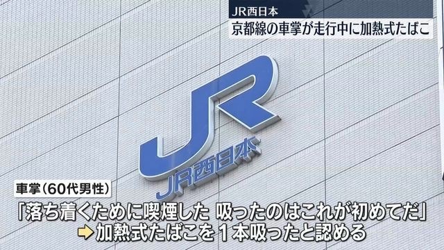 JR西日本は、京都線の車掌が電車の走行中に加熱式たばこを吸っていたと発表しました。