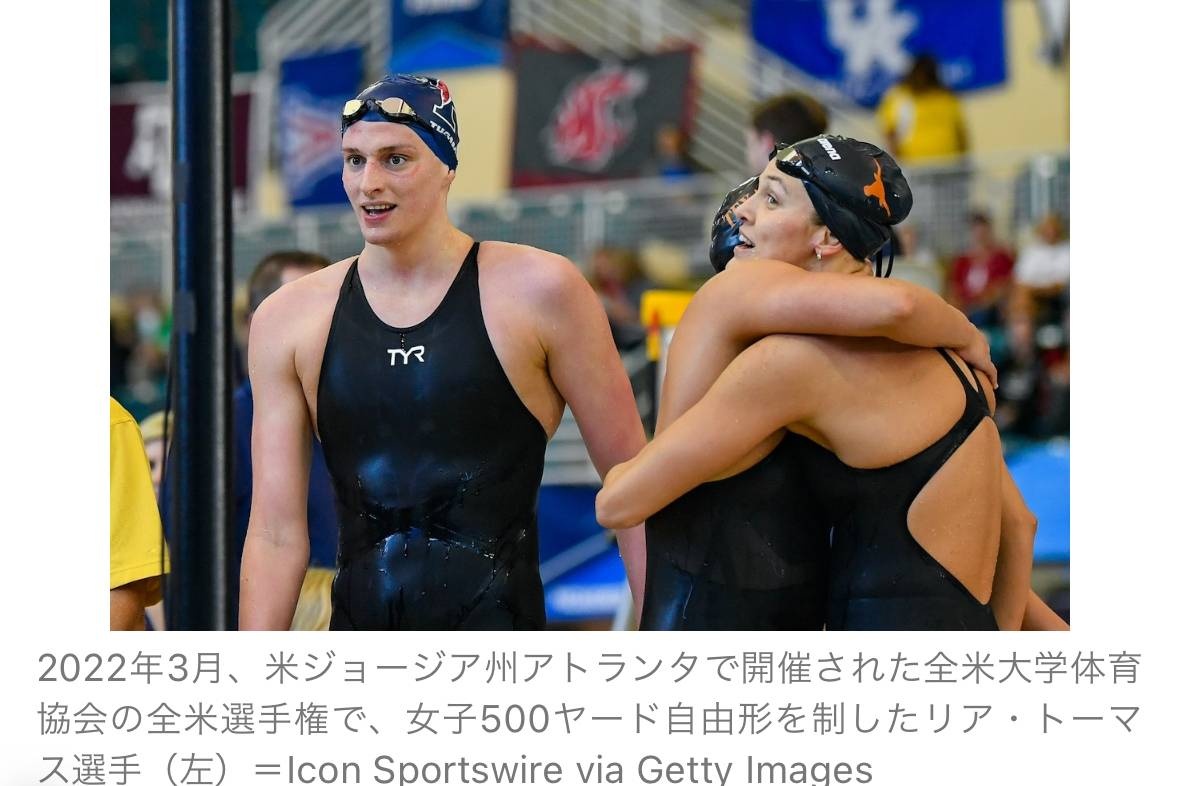 - 全米大学体育協会(NCAA)がトランスジェンダーの女性による女子種目への出場や女子更衣室の使用を認めたのは女性への性差別やプライバシーの侵害にあたるとして、米国の女性アスリートら16人が14日、ジョージア州の連邦地裁に訴訟を起こした。原告側は主に、トランスジェンダーを公表している選手としてNCAAの全米選手権で初めて優勝したリア・トーマスへの対応を問題視している。