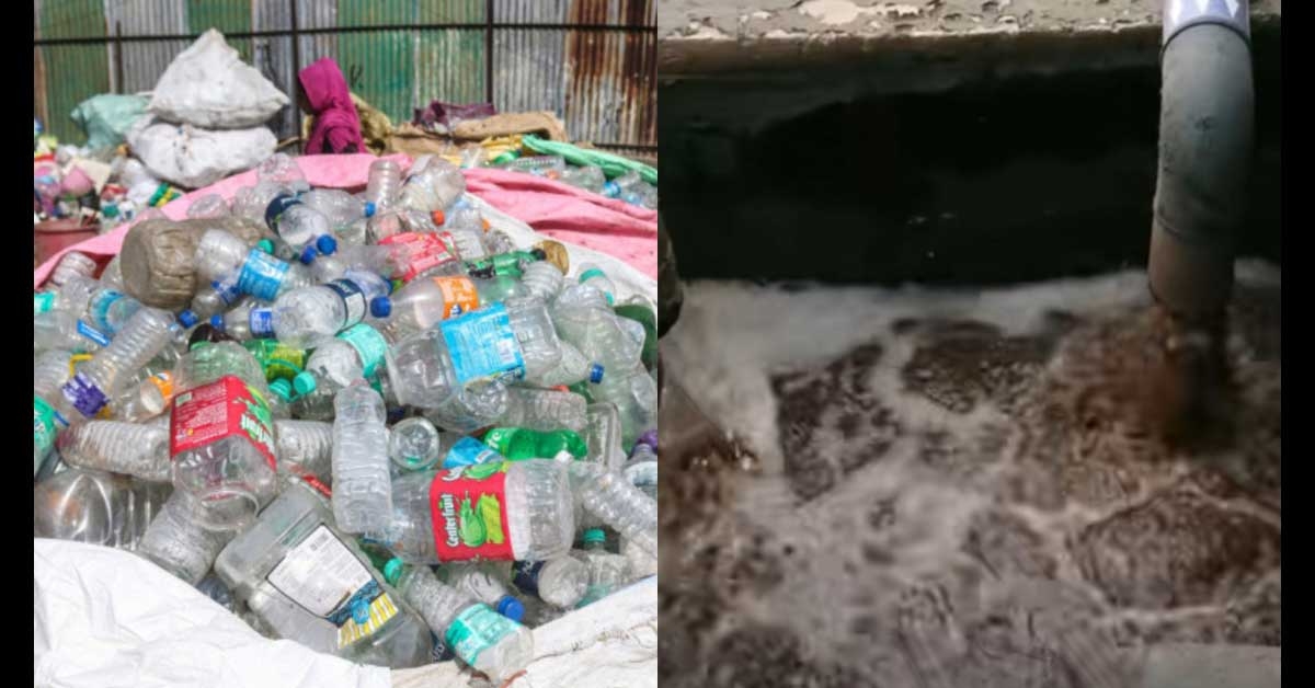 一部の廃プラスチックは、主に苛性ソーダを洗浄剤として用いるため、洗浄後の排水は汚染される。これらはアルカリ性の洗浄剤であり、