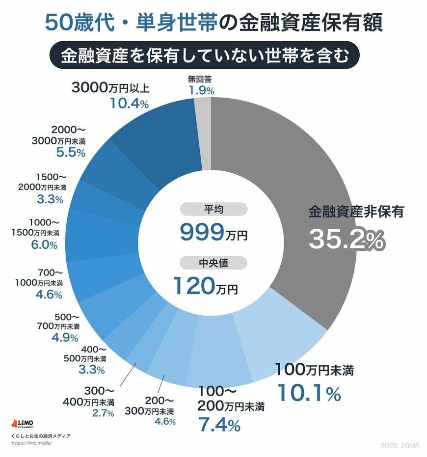 - 50代単身世帯の金融資産が半数が100万以下って本当かよ