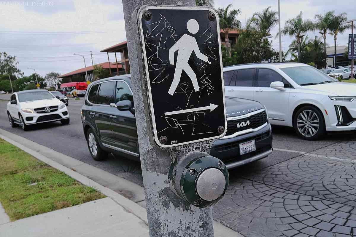 ところが、南カリフォルニアを歩いているとあちこちの交差点に押しボタンが存在する。筆者が見た限りでは、押しボタンを押して道路を横断する意思表示をしないと、歩行者信号が日本でいうところの青にはならないのである。
