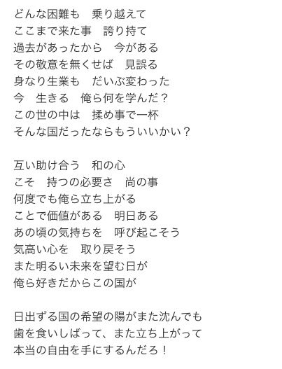 「和の心/ケツメイシ」の歌詞 って「イイネ!」「日出ずる国の希望の陽がまた沈んでも歯を…」勇気をもらったり、泣けたり、癒されたり…、この歌詞をチェックしてみて!人の心を打つ「言葉」がぎっしり!www.uta-net.com - 2 : 2026/02/03(火) 02:11:10.51 ID:FepZZsGy0
