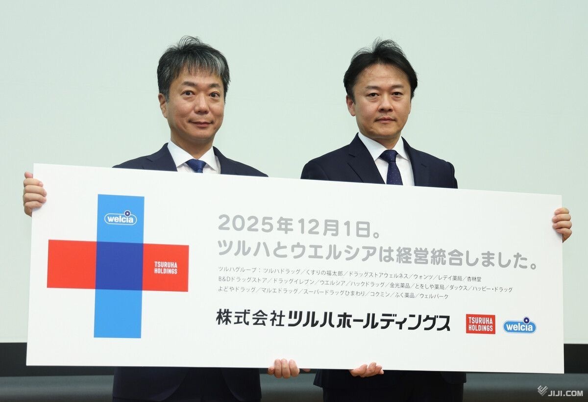 https://www.jiji.com/jc/article?k=2025120100876&g=ecoドラッグストア2位のツルハホールディングスと最大手のウエルシアホールディングスが1日、経営統合した。両社の株式を持つイオンが主導し、株式交換によってツルハがウエルシアを完全子会社化。年間売上高が2兆円を超える巨大ドラッグストアチェーンが誕生した。