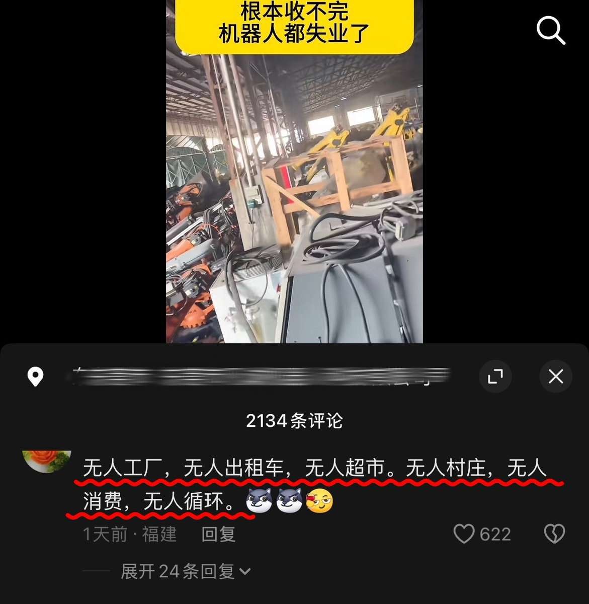 有网友专门收购生产机器人,称今年倒闭的工厂太多,根本收不完。网友评:如果什么都是无人的,最终也会无人消费,工厂也注定倒闭。
