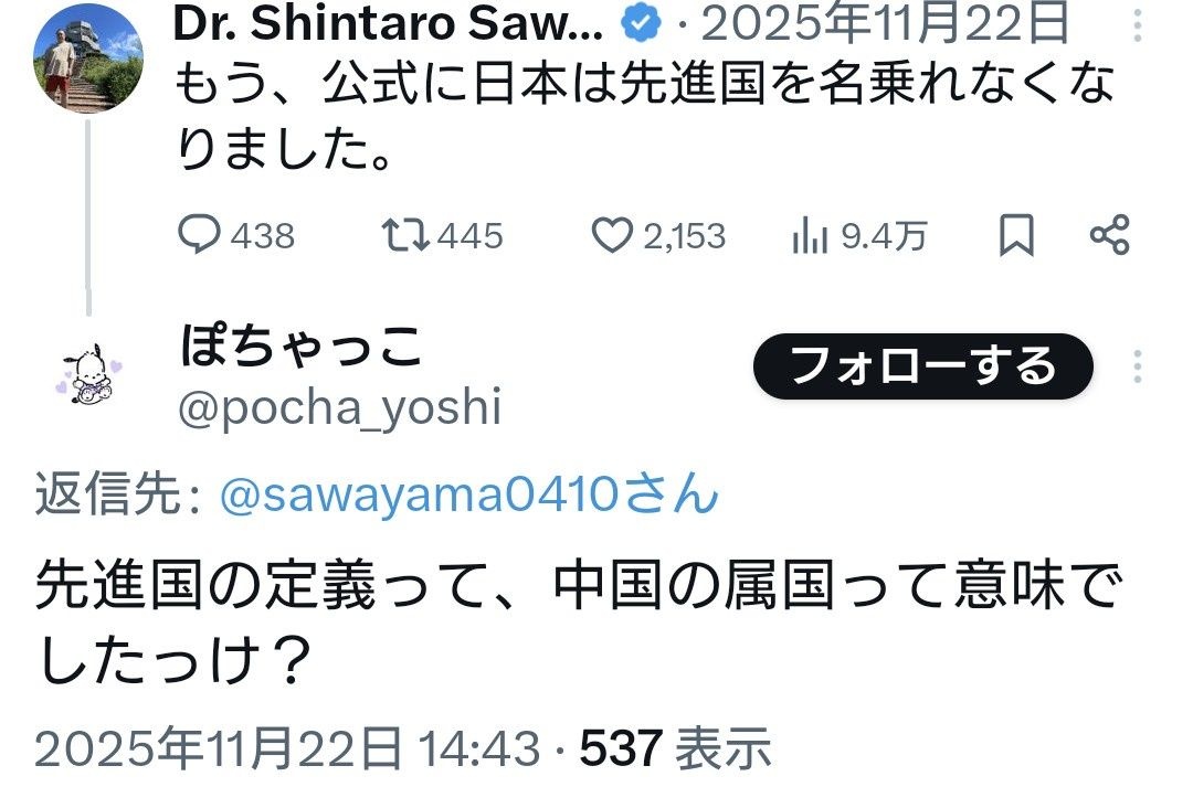 パさん「もう、公式に日本は先進国を名乗れなくなりました」