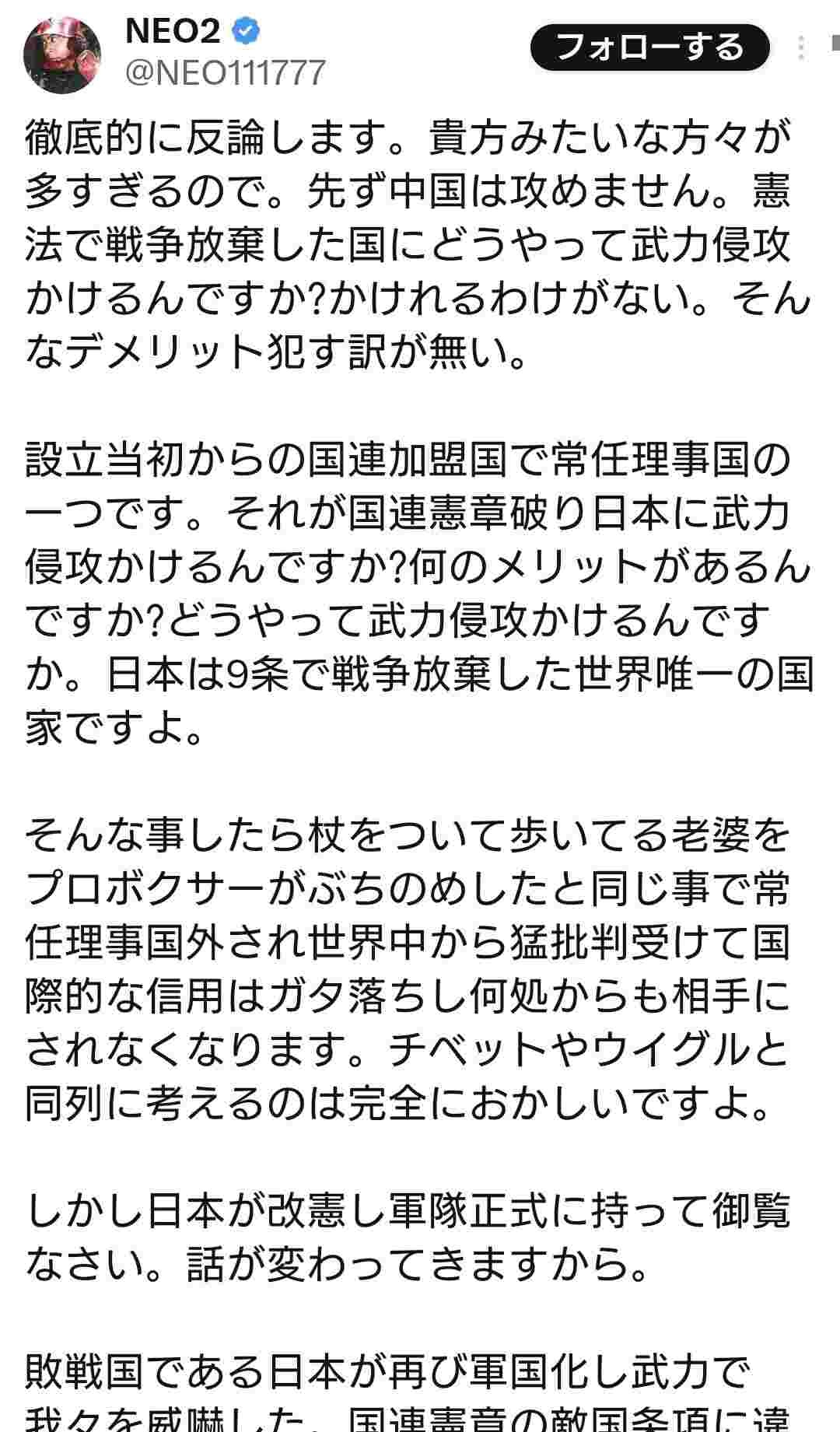 パさん「中国は日本を攻めません。憲法で戦争放棄した国にどうやって武力侵攻かけるんですか?」