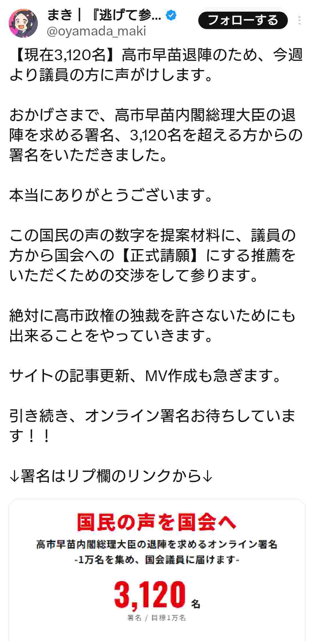 その署名って…何の意味があるの?一定数貯まったら高市が辞任すると思ってるの?