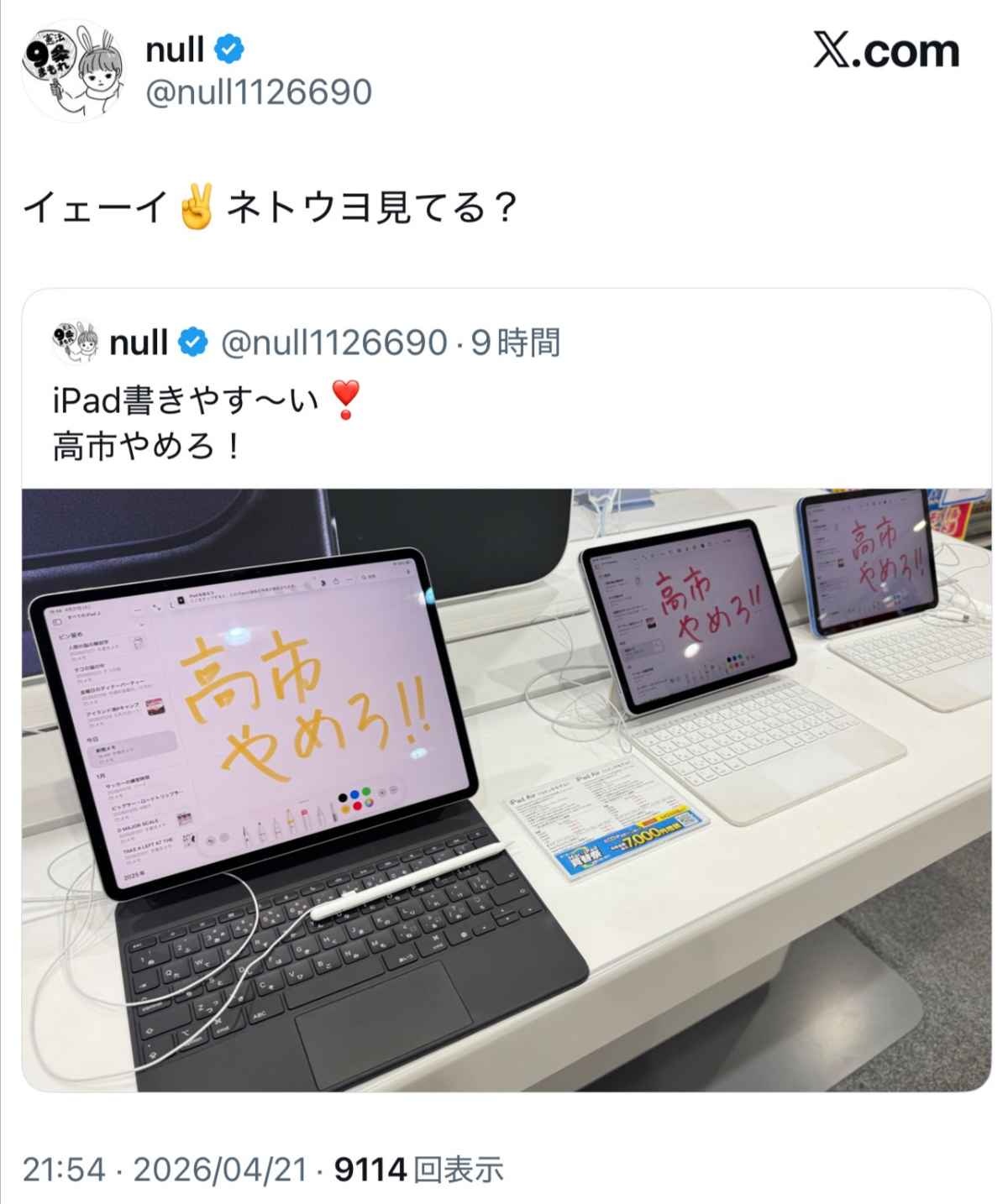 全国の家電屋から試し書きタブレットが消えてまともな絵師が迷惑するやつじゃん