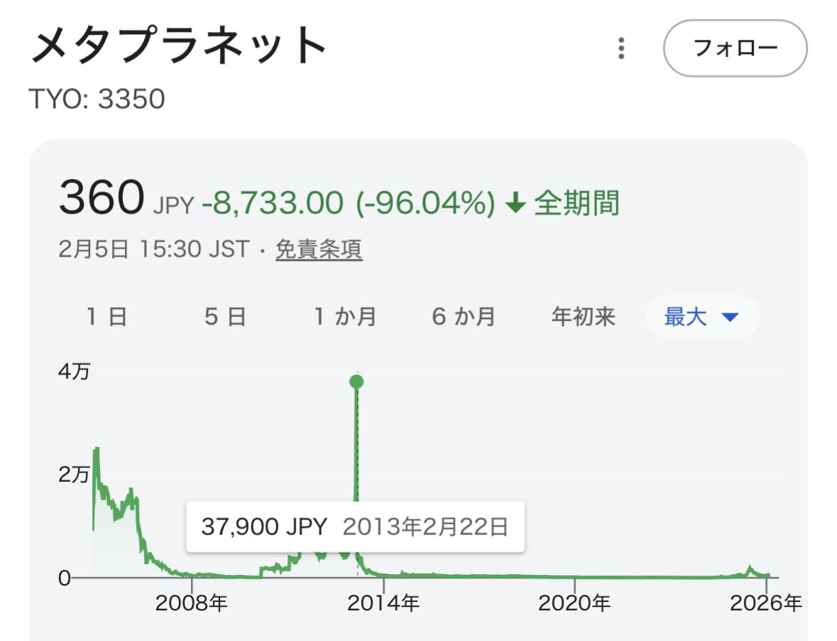- 結局ビットコイン持ったところで定期的な事業収益に結びつかないと思うのだけど、メタプラは何してる会社なんだろ