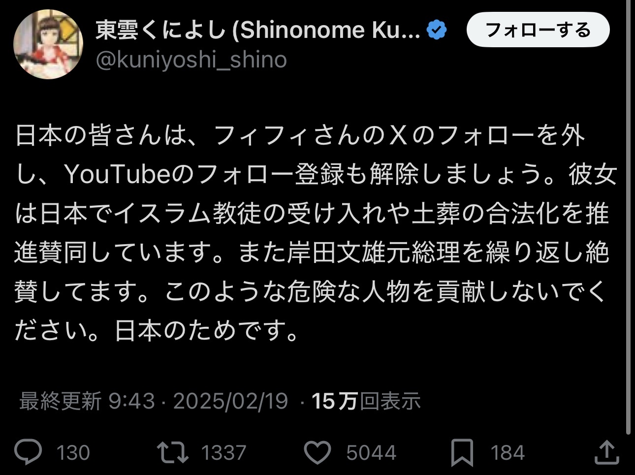 フィフィの動画は中国韓国バッシングばかりだぞ - 7 : 2025/02/19(水) 23:59:20.30 ID:1TCto+gY0