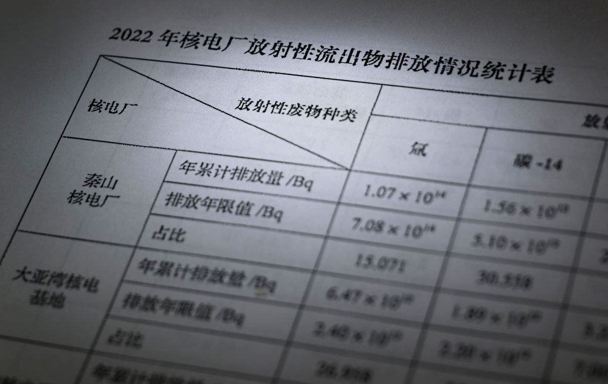 西日本新聞が昨年11月刊行の24年版を入手したところ、23年版まで原発ごとの放出量を記してきた「放射性流出物排放情況統計表」がなくなっていた。一方で、年鑑の本文に「放射性物質の放出は各種規定に従って厳格に管理されており、23年の実績は全ての発電所で国家核安全局が定める上限値を下回った」と記していた。