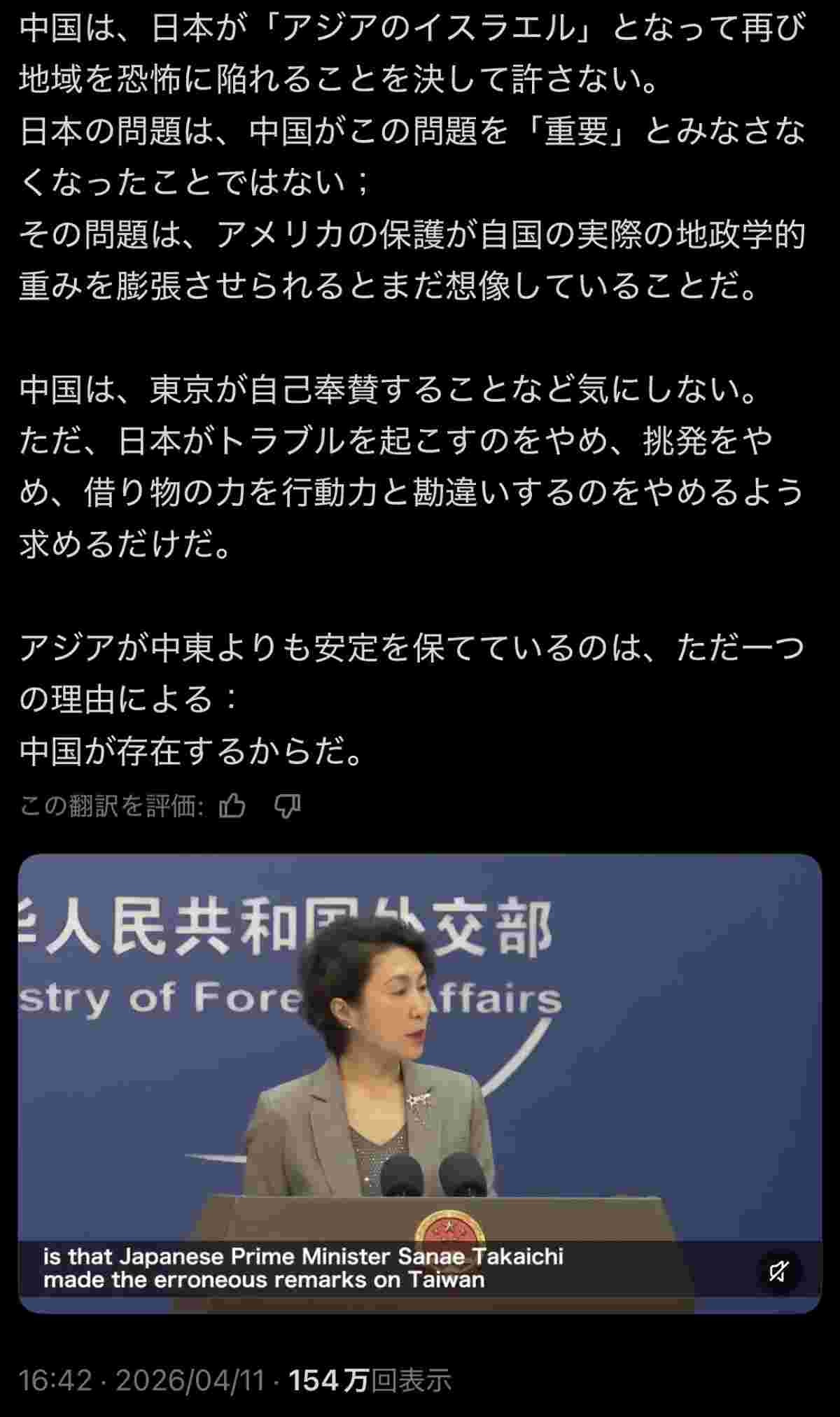 中国「日本はアジアのイスラエル。我々が平和守ってる」→たった1枚の画像で中国発言が事実と証明