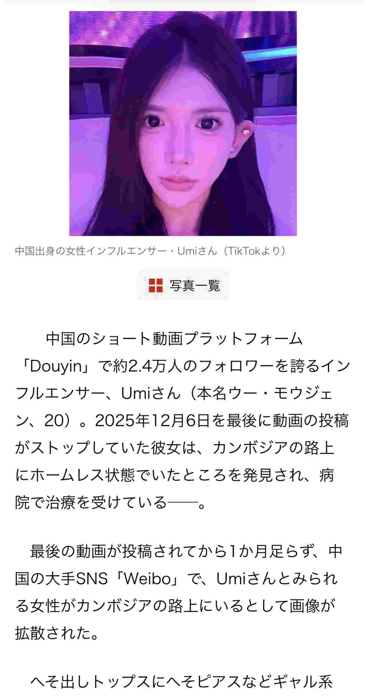 〈自慢のロングヘアがボサボサに…〉中国美女インフルエンサー(20)、精神に異常をきたして路上生活…母親が電話で抱いた疑念「話し方を指示されているのでは」【高給求めてカンボジアに渡航も】