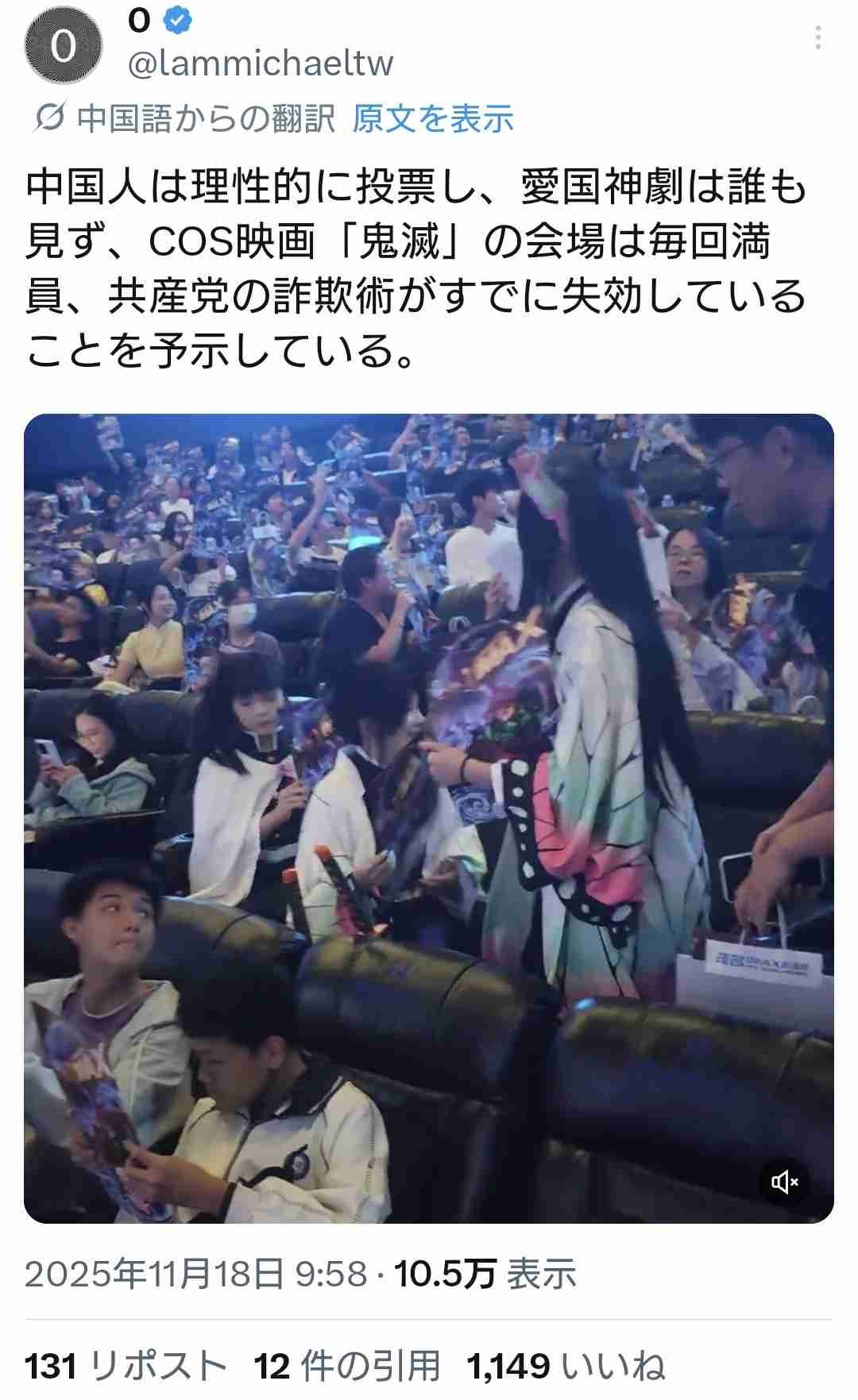 完全無視で鬼滅鑑賞…なお中国SNSは皮肉投稿で溢れている模様…😭