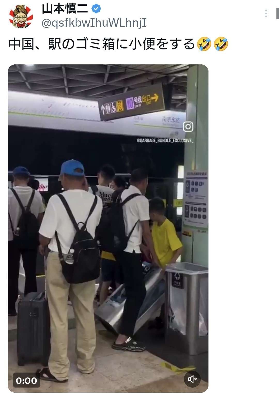 中国人、駅のゴミ箱に小便をする
