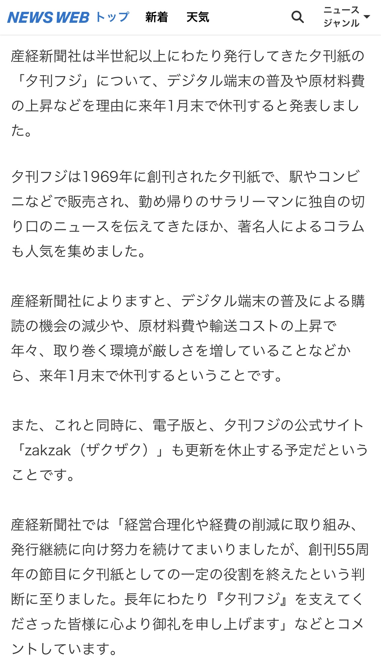 中国崩壊論を長年唱え続けてきたネトウヨ愛読紙『夕刊フジ』、自身が終了wwwwwwwwwwwwwwwwwwwwwww