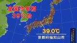 今日22日、京都府福知山市では14時52分に気温が39.0℃に達し、全国で今年初めての39℃台を観測しました。