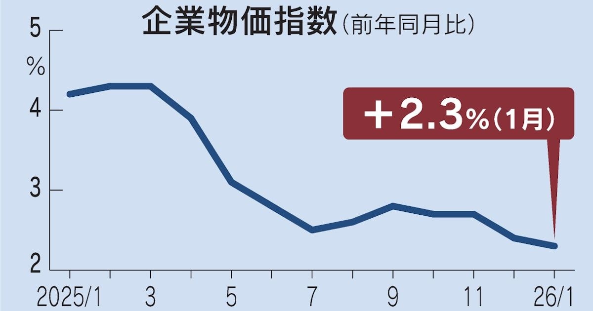 企業物価指数、1月2.3%上昇 伸び率は縮小