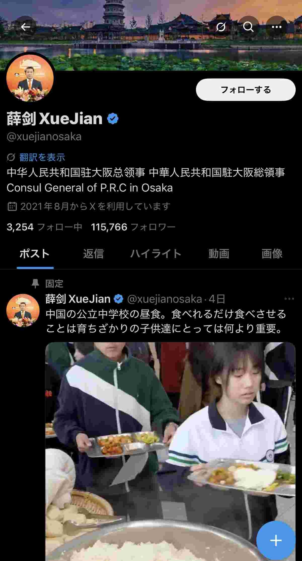 例の中国総領事、毎日更新していたXの更新が突然途絶える… 何かが発生した模様