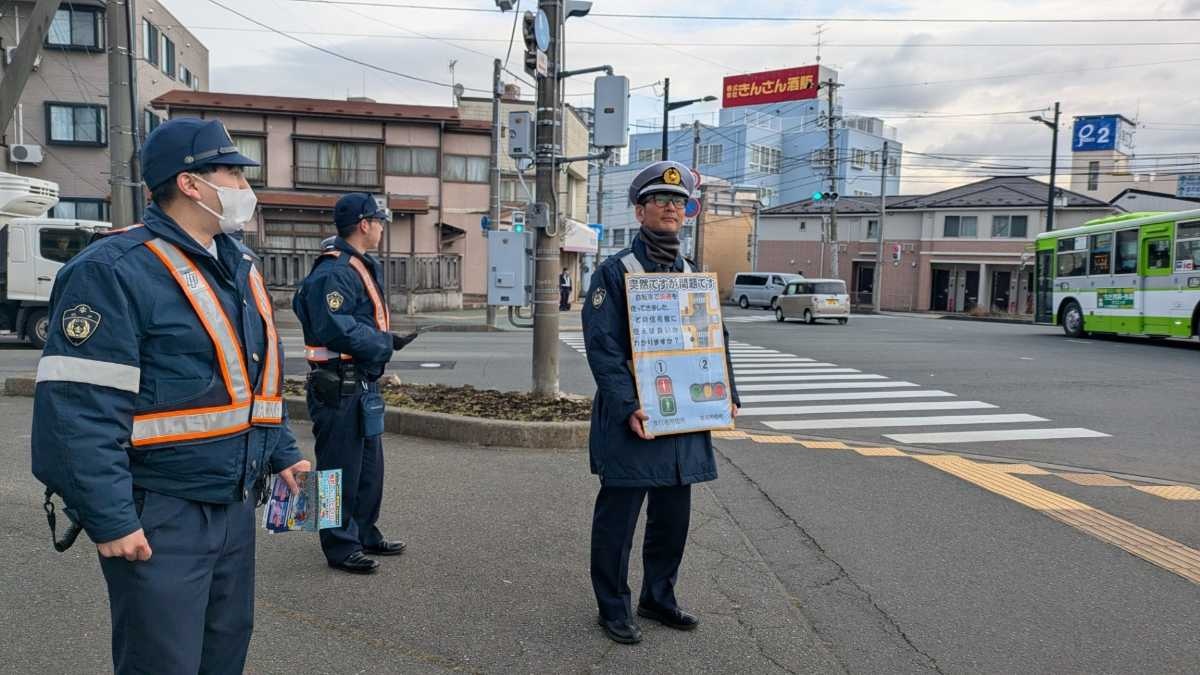 「4月1日から自転車の交通違反にも反則切符が適用されるようになりまして、信号無視の場合は反則金6000円」9日は午前7時半から盛岡市南大通の明治橋北交差点で、警察官12人が「青切符」制度の導入を知らせるチラシを配りました。