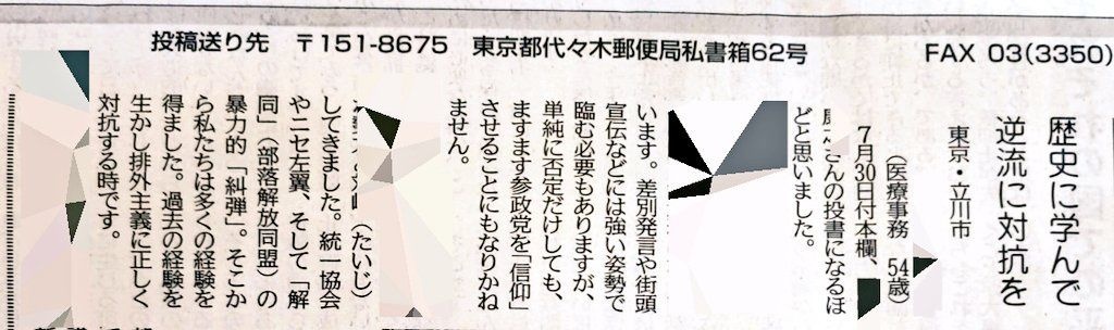 - 赤旗の投書でも、単なる糾弾は良くないのではという意見が寄せられるようになりました