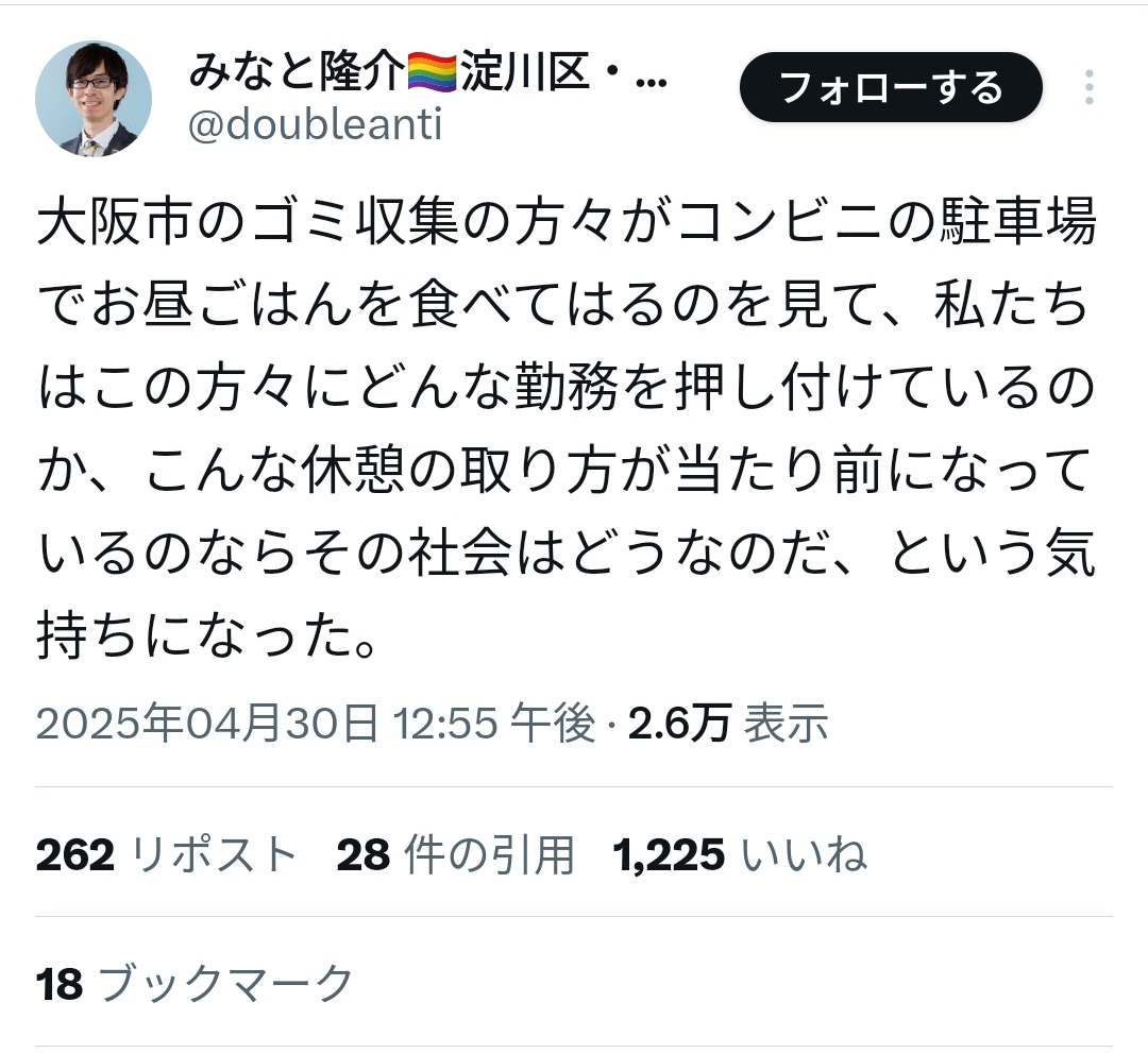 コンビニの駐車場で飯食ってるやつなんて他にもおるのになんでごみ収集車の人を挙げたのか