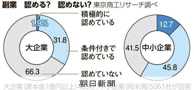 副業「認めない」大企業は6割超 中小は容認多数 東京商工リサーチ
