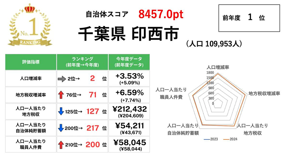 千葉県印西市、自治体経営力で日本一に (コウダプロ調べ)