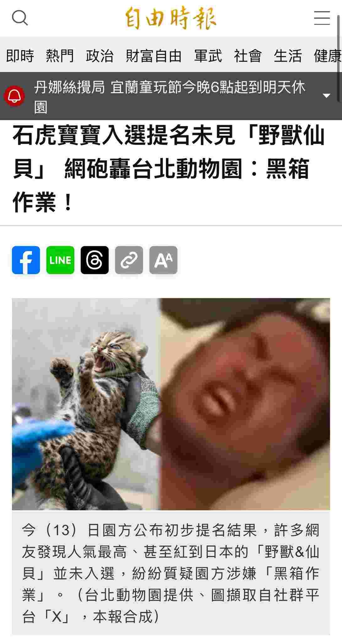台湾の動物園、産まれたヤマネコの名前を投票にしたら野獣先輩が1位になるもエントリーから除外される