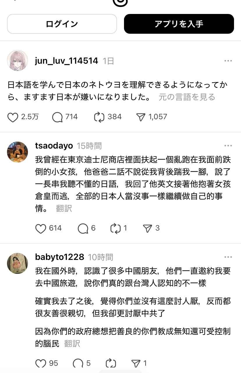 台湾人「日本語を学んで日本のネトウヨを知ったら日本が嫌いになった」→2.5万いいねwww