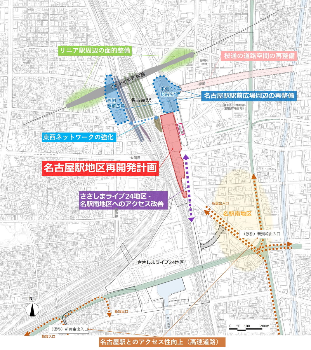 名古屋駅地区再開発計画は、行政が主体となって進める「リニア関連プロジェクトとの整合」や、空港アクセスの利便向上を目指す名鉄名古屋駅の拡張(4線化)を含めた「地域交通拠点の形成」のほか、名駅南地区やささしまライブ、栄をはじめとする「都心部に賑わいを広げる」ための共同開発を行なうというもの。