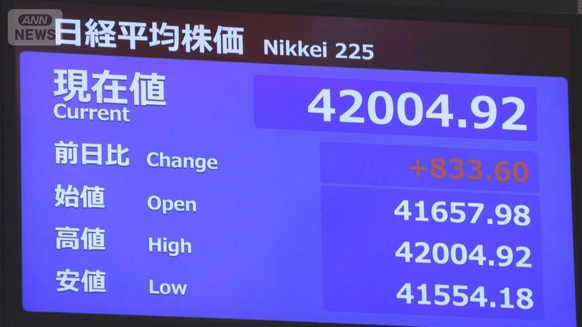 日経平均株価 4万2000円台に上昇 史上最高値に迫る 関税めぐる日米合意などうけ上昇続く