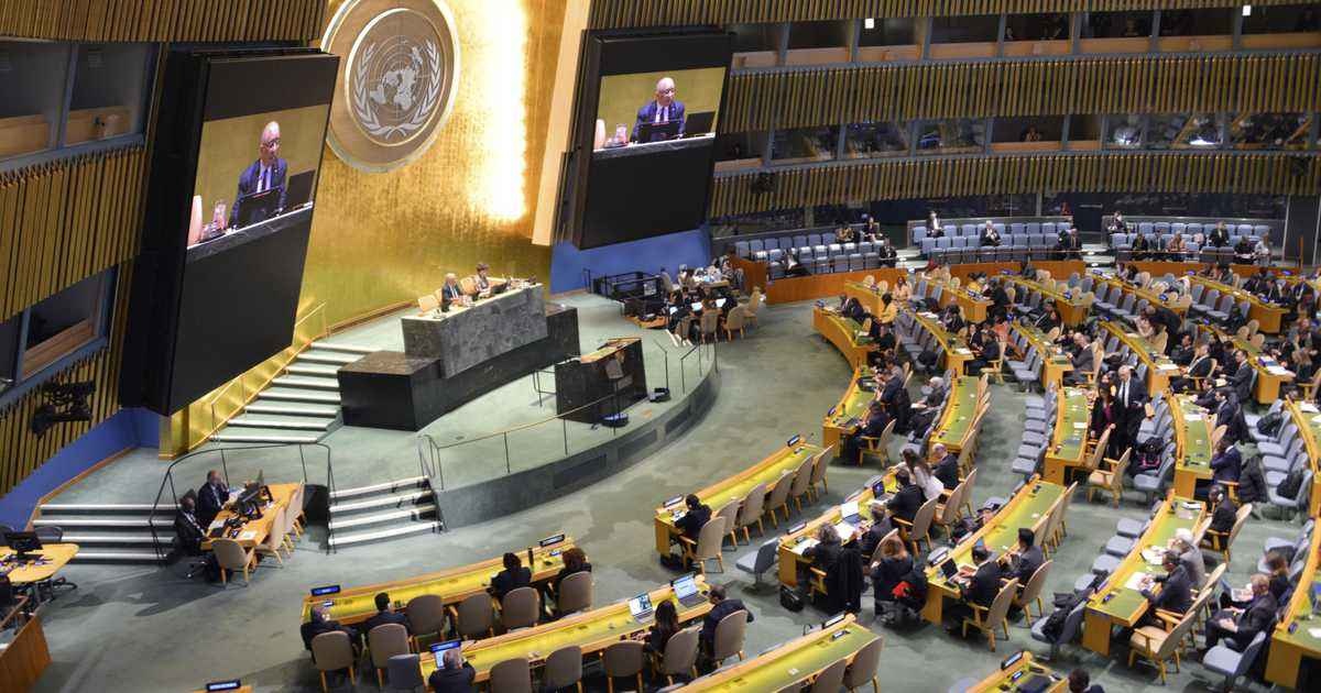 決議に法的拘束力はないものの、国際社会の総意としての重みを持つ。EU加盟国や英国、日本など93カ国が賛成し、米国やロシアなど18カ国が反対。65カ国が棄権した。