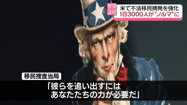 不法移民など外国人の取り締まりに力を入れるトランプ政権。1日あたり3000人の摘発をノルマにしているといいます。