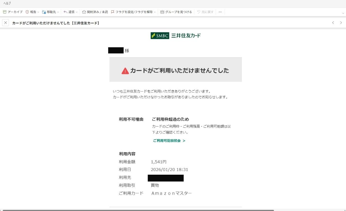 ということは今から2月26日まではクレジットカードで一切の買い物、決済ができないことになる続く