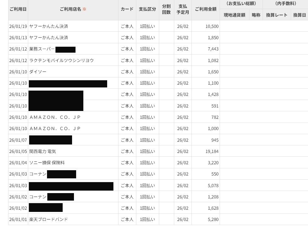 - 改めて見ると俺もクレカ経由の支出大杉だわ、反省しよ