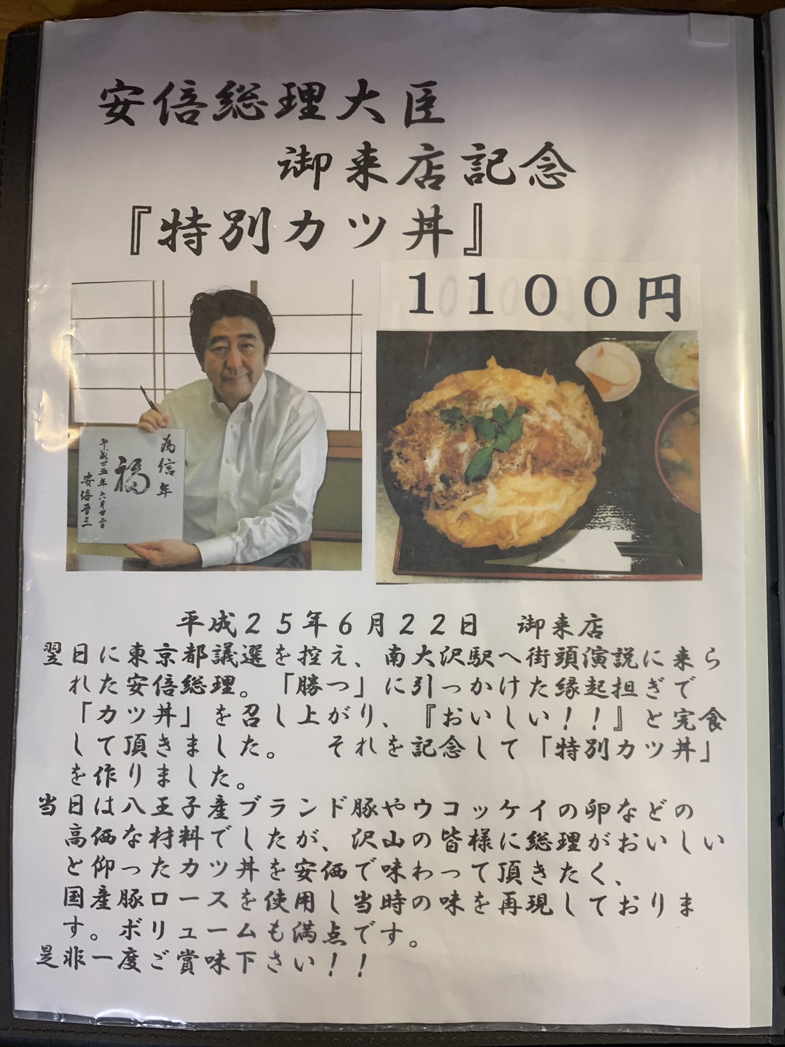 “安倍総理大臣御来店記念『特別カツ丼』”。