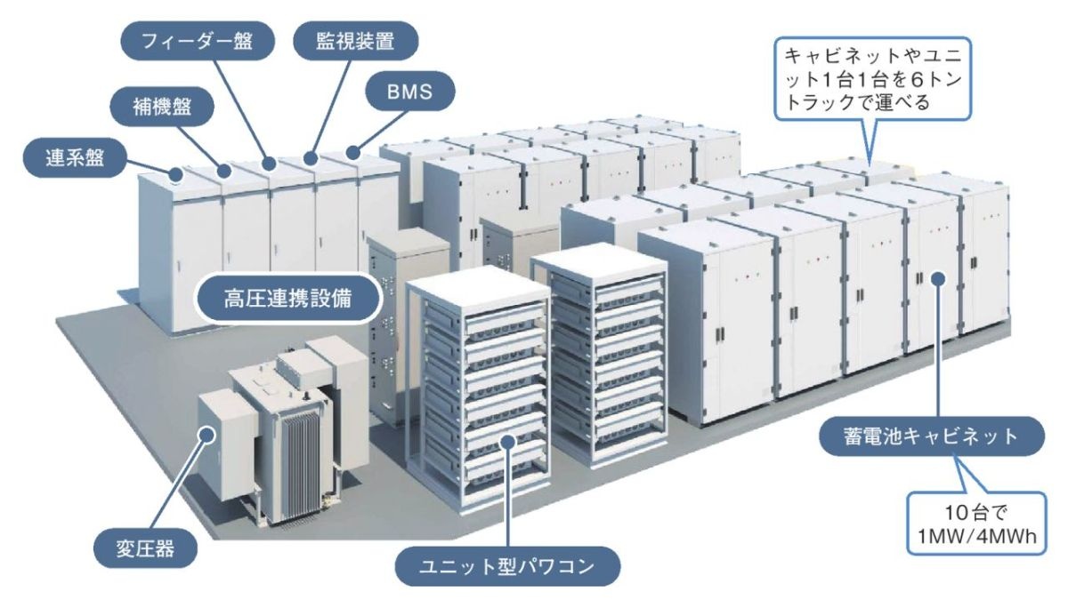 蓄電所に用いられる蓄電池を用いたエネルギー貯蔵システム(BESS)の価格が急速に低下している。最近ではナトリウムイオン2次電池版のBESSも登場してきた。