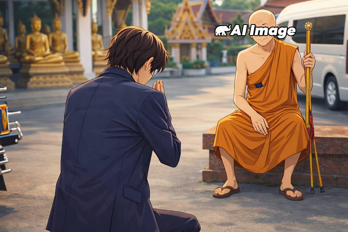 寺院で泣き崩れる日本人男性、過去の窃盗事件で警察が事情確認~タイ東北ウドンタニ