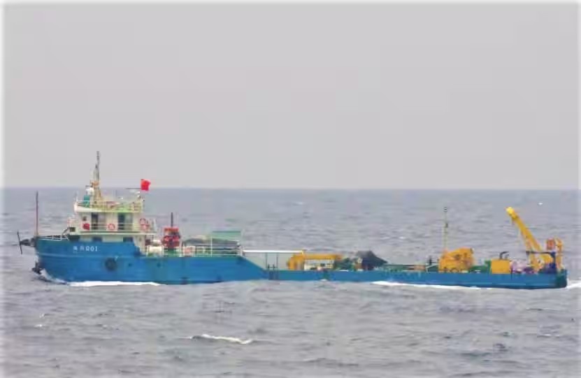 11管によると、現場は尖閣諸島(同県石垣市)大正島の北北東約236キロのの海域。海保の巡視船が11日午前6時半ごろ、「海科001」の右舷からパイプのようなものを海中へ延ばしているのを確認した。