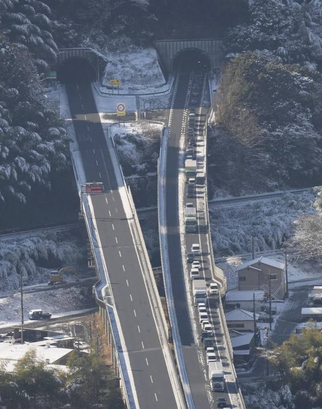 西日本高速道路は3日午前4時過ぎから大竹IC―熊毛IC(山口県周南市)間の上り線を通行止めにし、動けなくなった車を道路脇に寄せて他の車が通れるようにした。渋滞は3日午前11時までに解消し、通行止めも午後2時までに解除された。