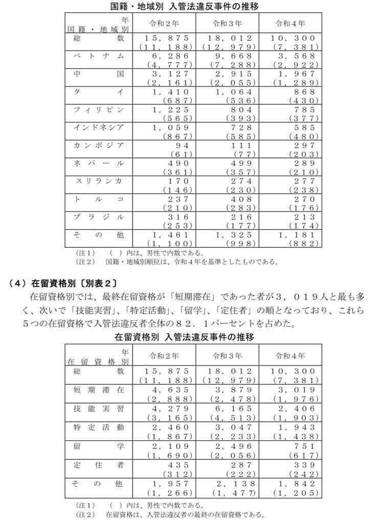 強制送還の外国人 1位ベトコン3568人 2位中国1976人 3位タイ867人 韓国ランク外😢